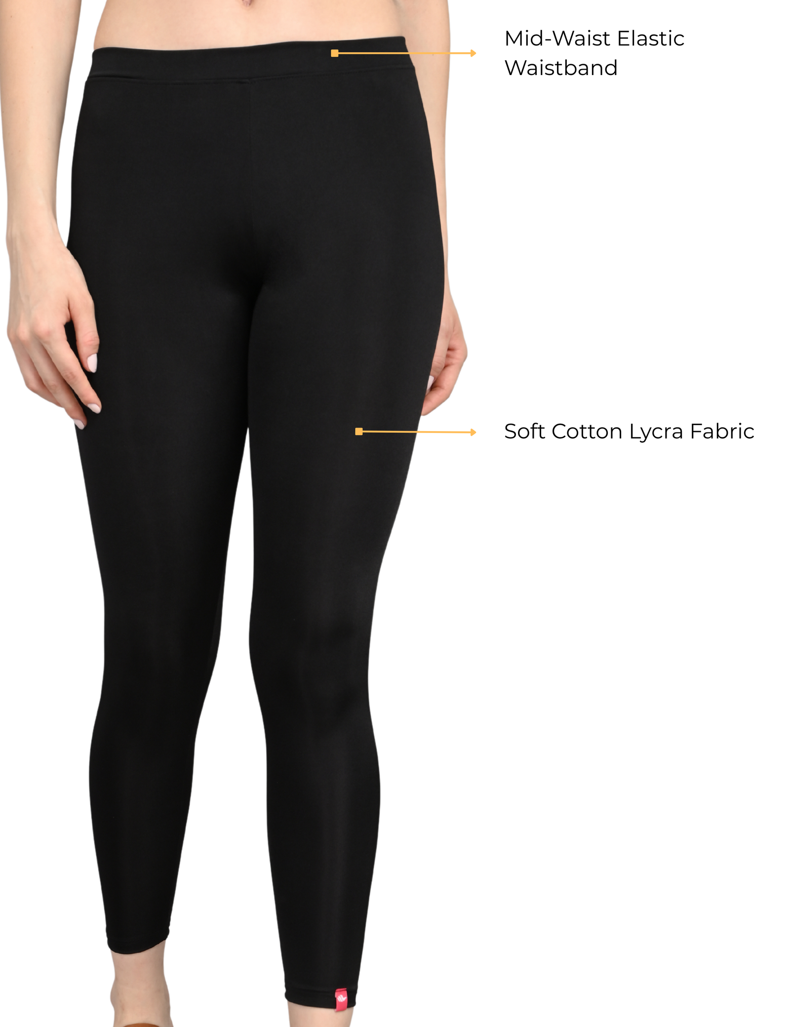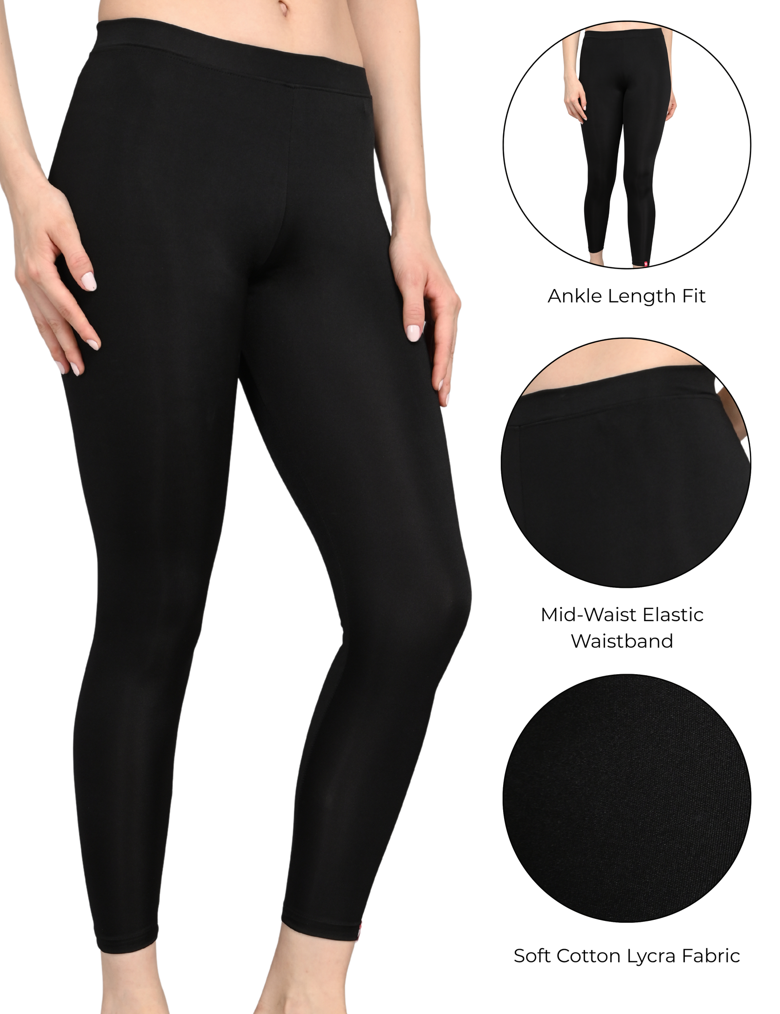 Ankle Length Cotton Lycra Leggings for Women | Mid Waist | Slim Fit Stretchable | Black