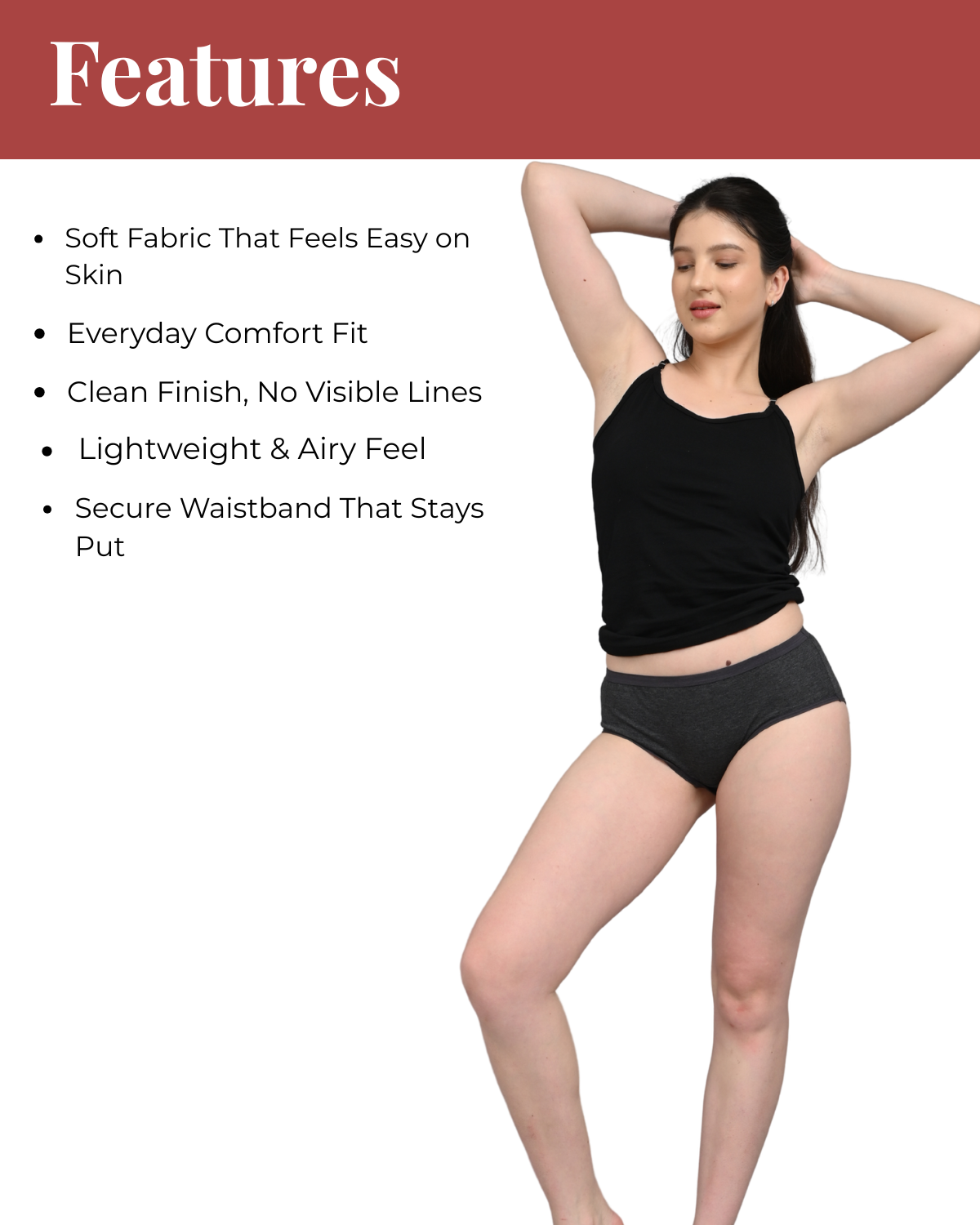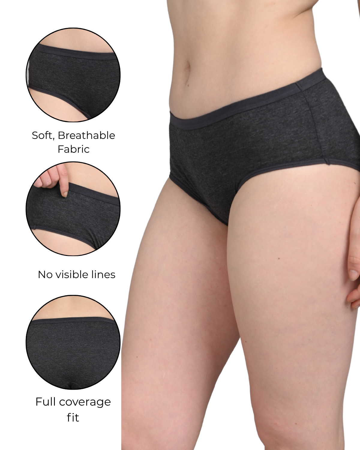 Everyday Panties for Women | Brief Cut | Soft Breathable Fabric | Full Coverage Fit | No Visible Lines | Grey
