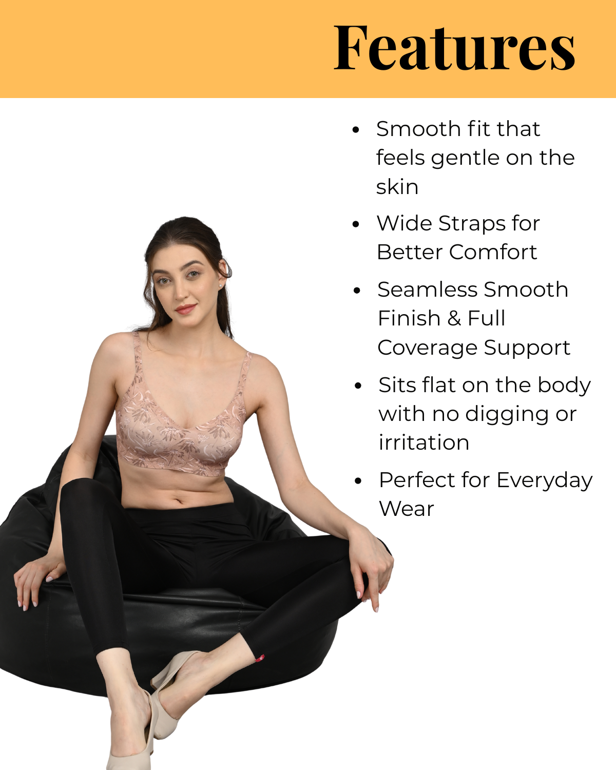 The full coverage design gives you a secure and confident feel, while the light padding adds just the right amount of shape without making it feel heavy. It’s supportive in a subtle way—something you can wear for hours without feeling restricted.