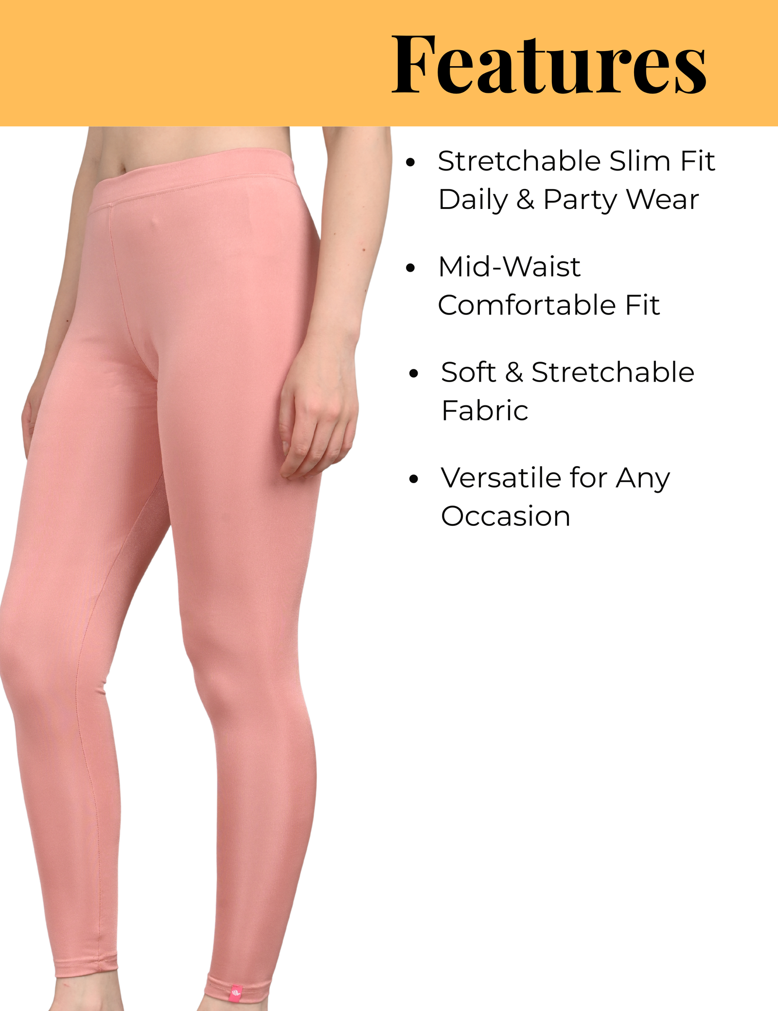 The subtle shimmer finish adds just the right amount of shine, making them versatile enough for daily wear while still being stylish enough for festive occasions and parties. The mid-waist elastic waistband ensures a secure and comfortable fit, while the slim fit design enhances your overall silhouette.