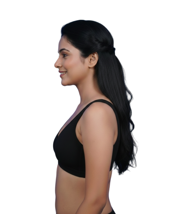 Upgrade your activewear collection with the women’s V-neck sports bra designed for smooth comfort and reliable support. Made from high-quality breathable stretch fabric, it gently fits your body throughout the day. The V-neckline enhances your shape , while wide shoulder straps reduce pressure and provide balanced support during workouts or daily activities. A mid-elastic under band ensures a flexible fit, making it ideal for yoga, gym sessions, walking, or casual wear. The non-padded, single-layer construction offers a natural shape and is comfortable. Its smooth finish minimizes friction and sits perfectly under tops and tees. Whether you’re exercising or relaxing, this lightweight sports bra delivers durability, flexibility, and effortless style. This also pairs effortlessly with leggings, joggers, or casual outfits. Durable, breathable, and thoughtfully crafted. This sports bra maintains its shape, elasticity, and smooth texture even after repeated washes.